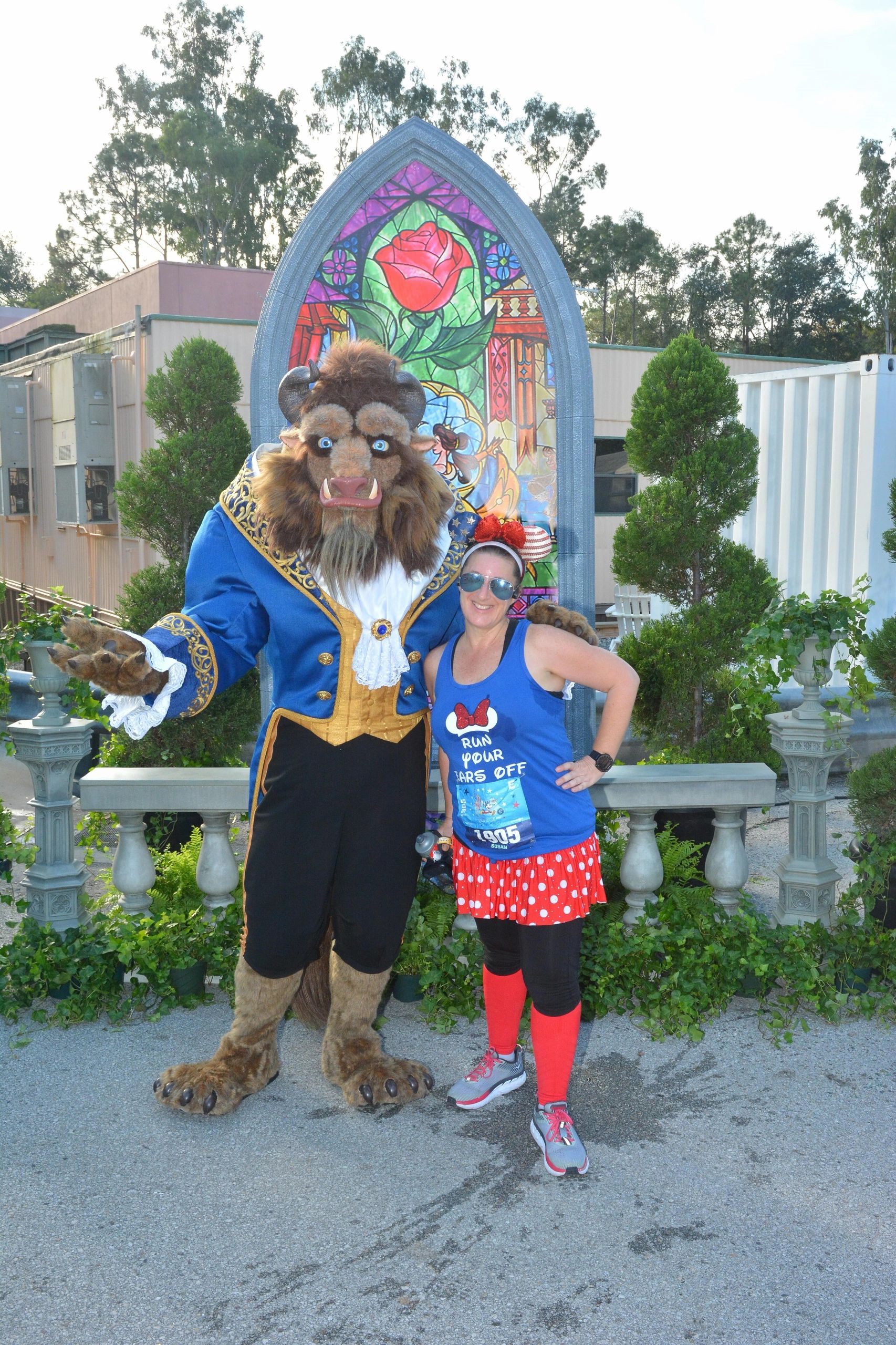 Being that I had a pretty good proof of time and knew there were 3 corrals of runners starting after me, I decided to take my time and stop at all the character stops. I was glad I did, the lines weren’t long and I got some really great pictures like this one with Beast. I stopped my watch at each stop because I was interested in seeing just how much time the character stops add to the final finish time. I stopped for 10 characters and was surprised that it only added 25 minutes to my finish time. This was a really fun half and I felt great while running. The last mile was a challenge but running through Epcot at that point made it more bearable.