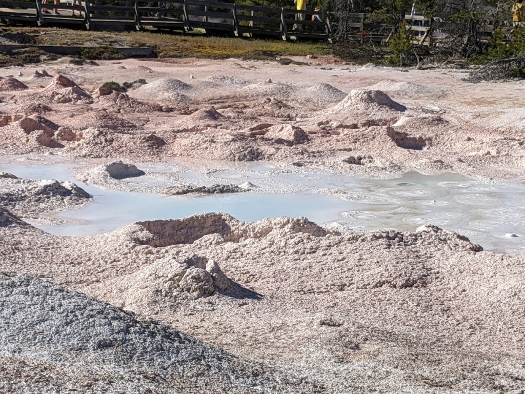 Fountain Paint Pots area included 4 of the 5 types of hydrothermal features, everything but the tavertine terraces. There was a trail that was approximately a half mile long. The trail was on a boardwalk. It’s important to stay on the boardwalk as the hot springs, geysers, mudpots and fumaroles are all extremely hot and would cause serious injury.