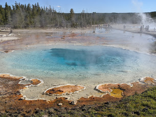 The most impressive thermal feature in this area to me was the Silex Spring. The color of it was beautiful, a good preview of the much more colorful hot springs that I would see later in the park. The Clepsydra Geyser was erupting and could be seen as i was driving up to the area. Even walking on the boardwalk, you ended up walking thru the steam from this geyser.