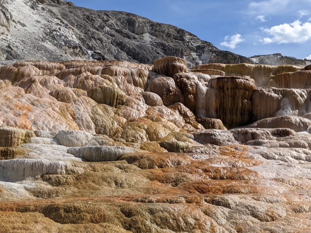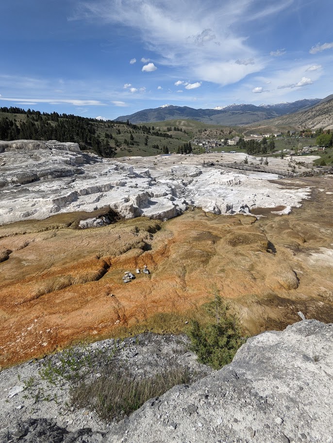 But this is the area of the park that features the fifth type of hydrothermal features, tavertine terraces, so it’s definitely worth checking out. These terraces will make you feel like you are looking at something from another planet. There are a couple of ways to view the terraces, you can park by the lower terraces and walk the boardwalk all the way to the top. This is a great way to see all of the terraces. Or for the upper terraces, there is also a parking lot by them. I walked all the way from the lower to the upper terraces after being up since 4am and hiking for 6 miles, probably would have been better to park near each and save my already sore legs a bit.