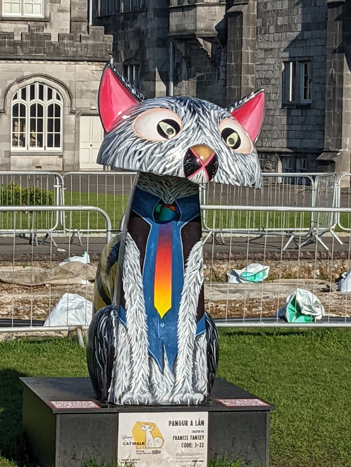 As we were arriving at Kilkenny, we were told the story of the Kilkenny Cats. As legend has it, there were once two cats who were involved in a ferocious battle. The cats are a symbol of the tenacity and fighting spirit of Kilkenny. While I was there, there was an art installation of cats throughout the city. As a huge cat lover, I was very excited to see these.