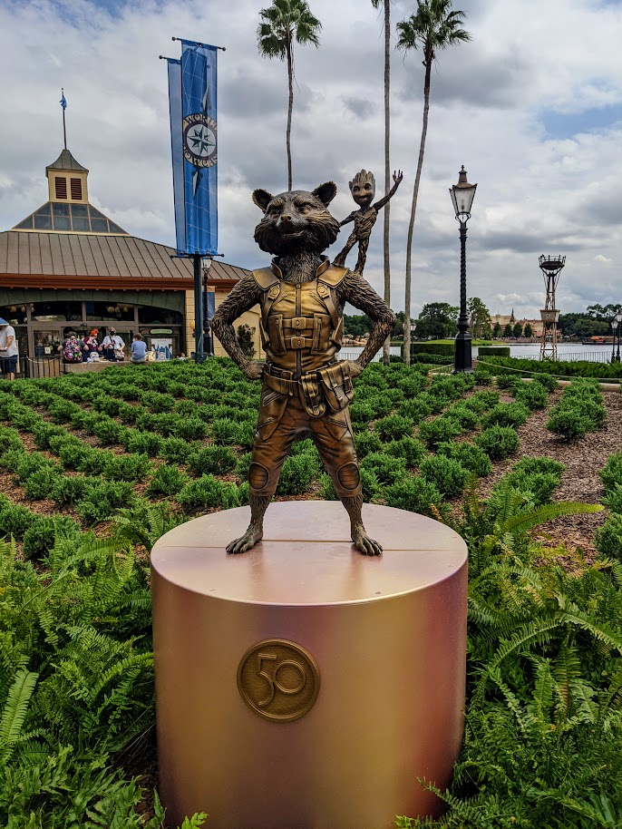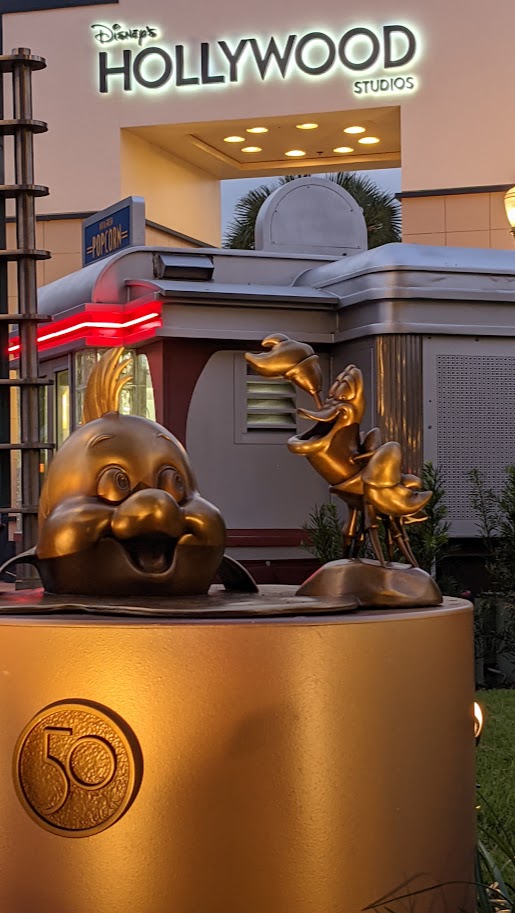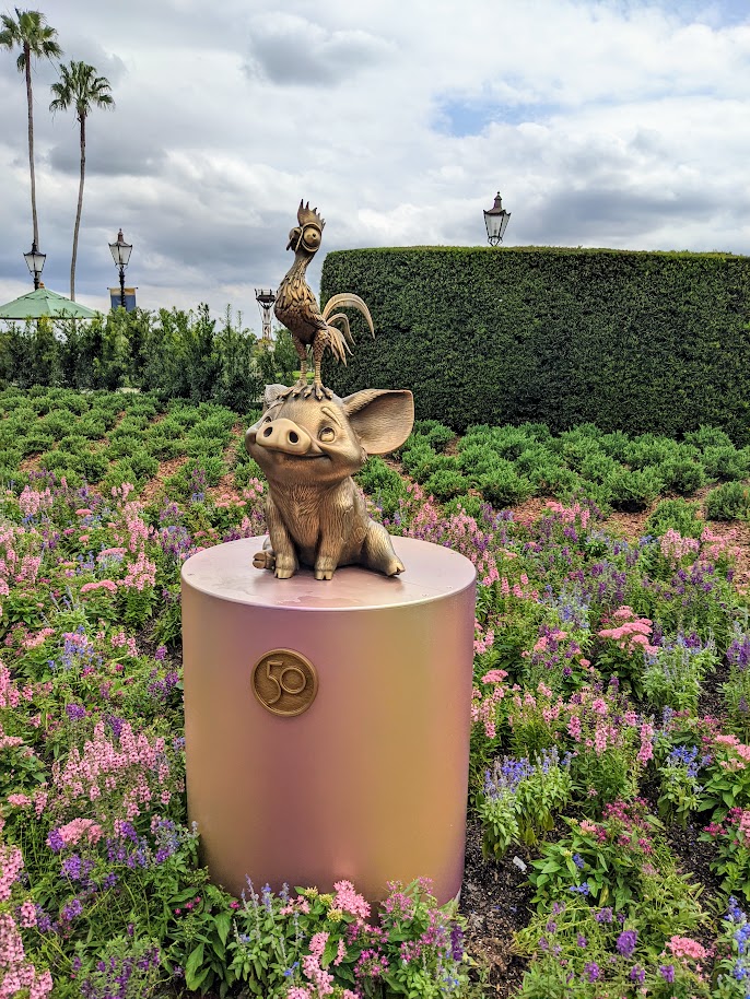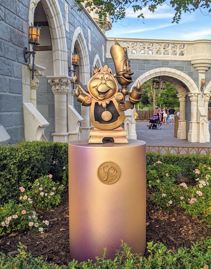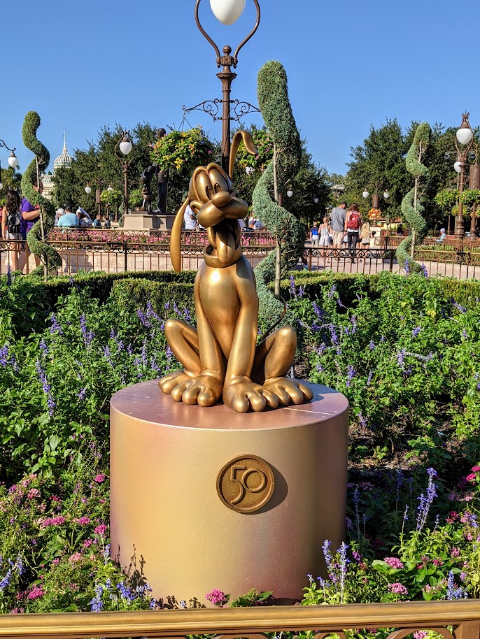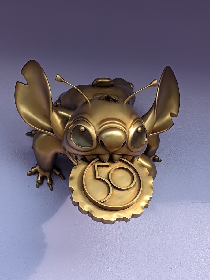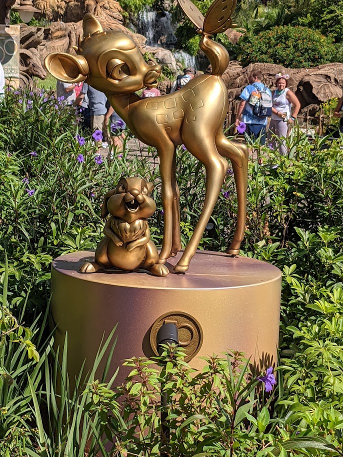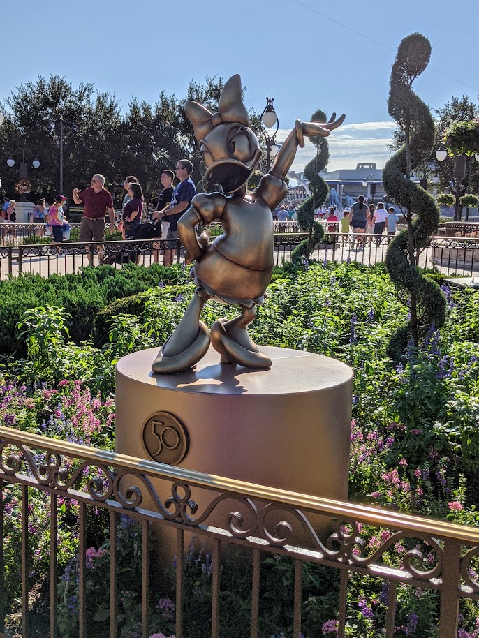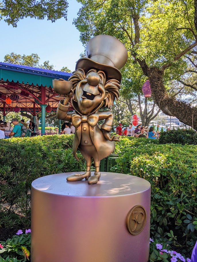Walt Disney World Celebrated its 50th Anniversary on October 1, 2021. As part of the 18-month long celebration, they have placed gold statues of the “Fab 50” Disney characters around all four Walt Disney World theme parks.