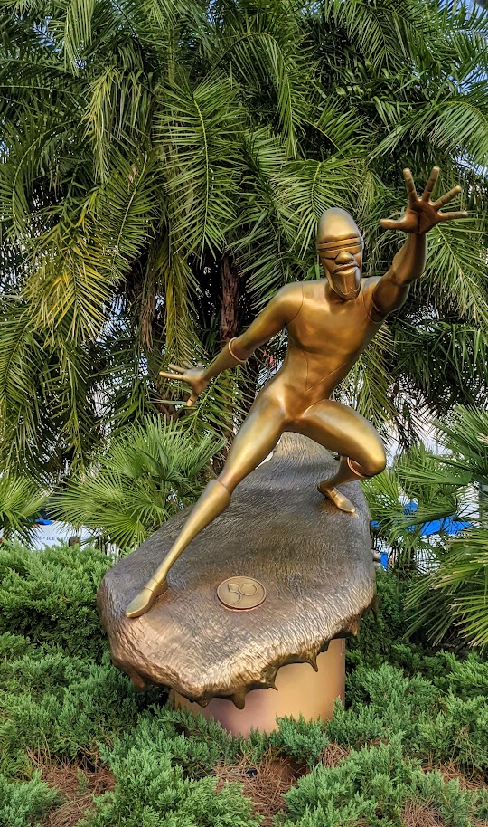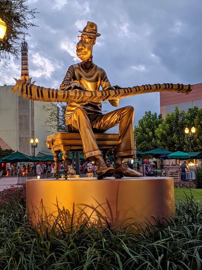 Walking into the park towards the Chinese Theater on the right-hand side in the grass in front of the Hollywood Brown Derby are half of the statues. My favorite is the one of Joe Gardner from Soul. I don’t know what it is about this gold statue, but I absolutely love it!