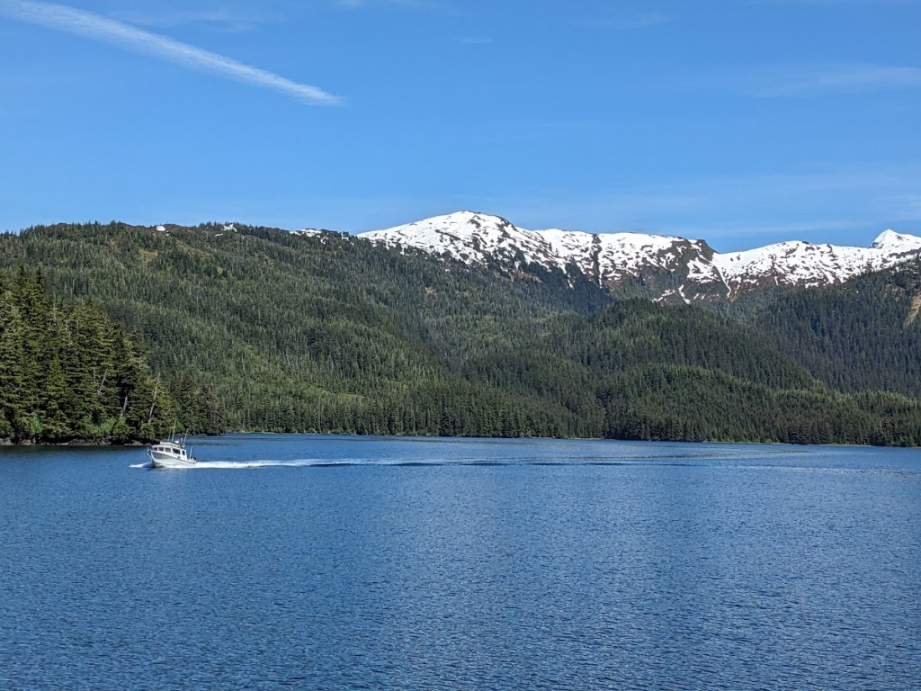 We took the Esther Passage into Blackstone Bay and the scenery seemed to take a dramatic turn even though we were still among the fjords. From the icy waters and glacial mountainsides, we went to green trees along the mountainside and were in search of bears and mountain goat along the shores. While we had no bear sightings, there were some mountain goats that those with binoculars saw in the distance high on the mountainside.