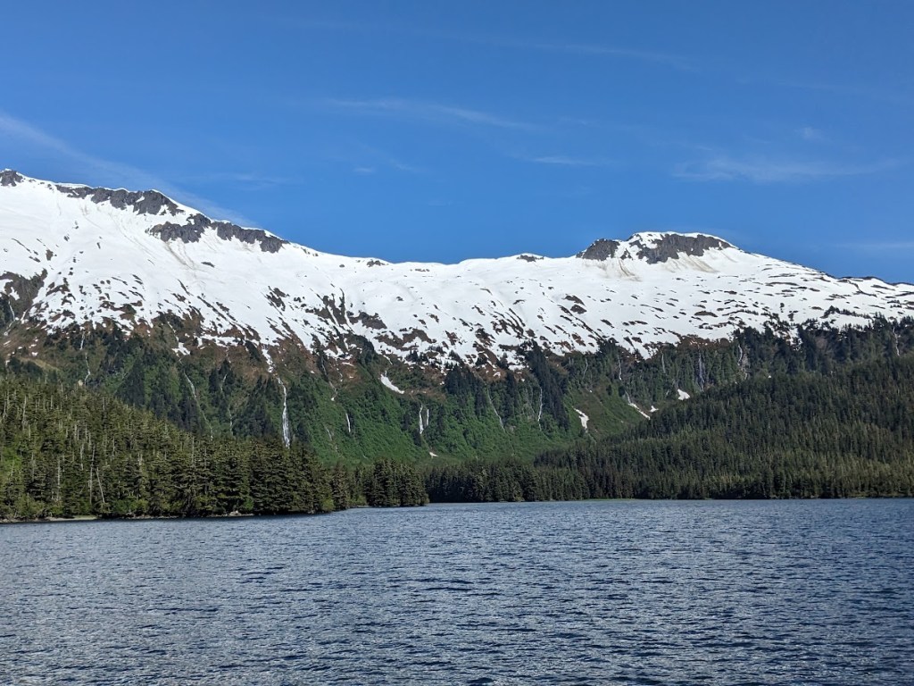 At this point we had seen our 26 glaciers, some up close and some from a distance. Now it was time to head back to port. As we got closer to the dock, we passed yet another beautiful set of waterfalls. These particular waterfalls had me wondering if I was in Alaska or Hawaii. They reminded me of the waterfalls I saw along the Road to Hana in Maui. Check out the photo below, what do you think, does this look like it’s in Alaska or Hawaii?