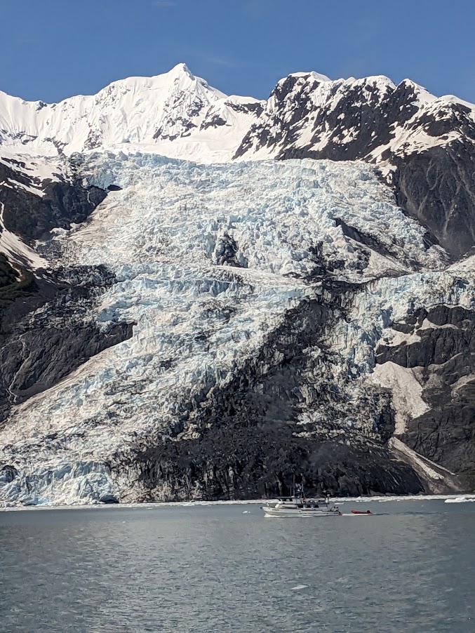 The cruise headed north thru Prince William Sound into College Fjord. This fjord features five tidewater glaciers, 5 valley glaciers and dozens of smaller glaciers. College Fjord was discovered back in 1899 by railroad Magnate, Edward Harriman and his crew. Harriman’s doctor suggested he take a vacation to rest, and he decided to go exploring in Alaska for Kodiak bears, not quite the rest his doctor had ordered. He took a crew of biologists, zoologists and other experts with him. Among his crew were professors from east coast colleges including Harvard and Amherst. They ended up naming the glaciers after East Coast colleges, the ones on the northwest side were named after women’s colleges like Smith and Wellesley and the ones on the southeast side were named after men’s colleges like Harvard, Yale and Dartmouth. As someone who lives and grew up in the Boston area, this was very interesting to me, nothing better than hearing familiar name from home while you are traveling.