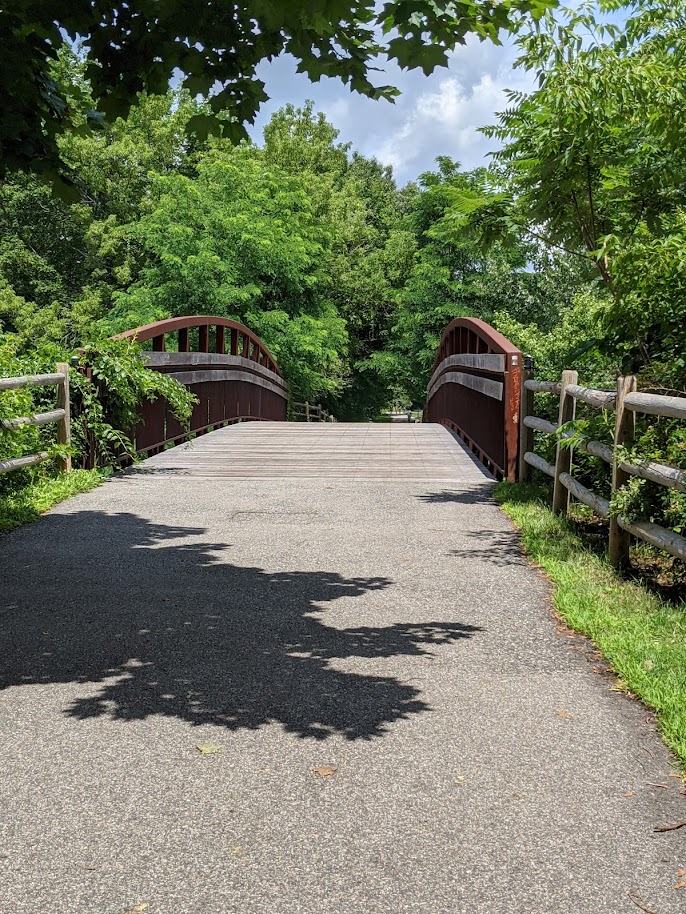There are two trails located at the falls. The first is a .3 mile trail down to the falls. This mostly paved trail passes over a bridge to a viewing platform at the base of the falls.