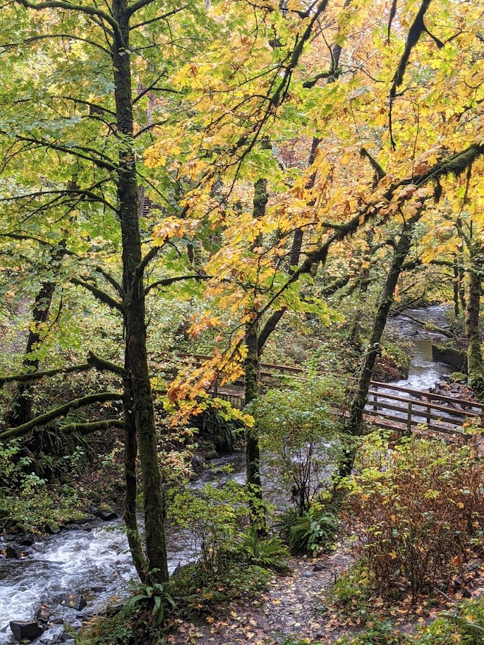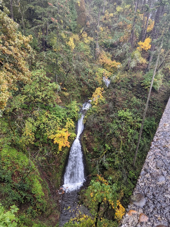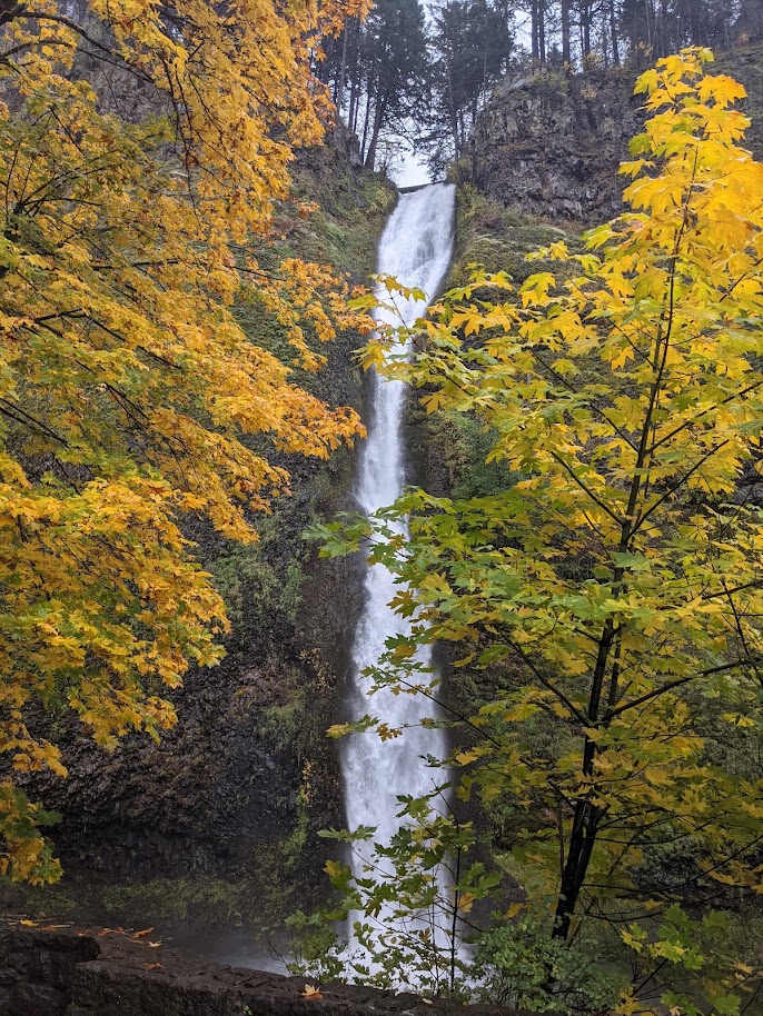 Due to the popularity of these falls, you must pack your patience, it’s not unusual for there to be a backup of cars on the road waiting to get into the parking lot. Even late afternoon on a rainy late October day I waited a good half hour to get in the parking lot. During the summer months in 2021, they instituted a timed reservation system to visit these falls. Another option during the summer and on weekends in the fall is to take the waterfall trolley (more on that later) which includes access to Multnomah Falls without the timed reservation ticket.
